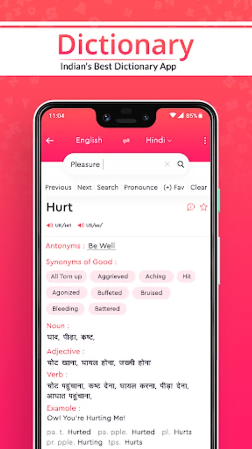 Major features supported by this English Hindi Dictionary app are defined in below steps.