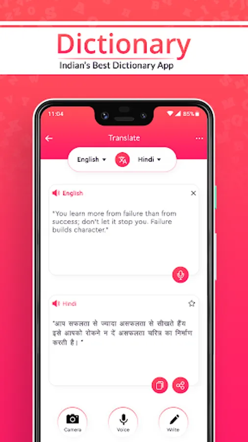 If you want to full featured English to Hindi offline dictionary app for learning English and Hindi then you are at the right place where you can easily search more than lakhs words on just a single tap. English Hindi Offline Dictionary application is providing many features including main dictionary, language, image, voice translator. it also includes text and camera translator so you don’t have to write sentences just scan it and translate it. it also has copy, share, speak, erase options for better and quick translation. what makes this app is different than other is we provide more than 1 lakhs of word for improving your English and Hindi words knowledge and another advantage of this app is totally free of cost. so it is the Best offline advanced English Hindi Dictionary & Translator app for learners, students, teachers, professionals, travelers, kids, boys and girls, business mans, players.
