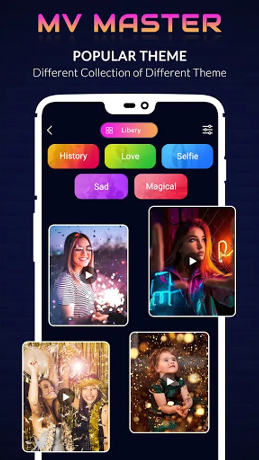 => MV video status maker application is the easiest way to create, edit and share amazing videos. here you can find the best different types of HD video templates to make amazing video status. you can mix up your different favorite photos for creating a beautiful photo video using this app. what makes this app is different than other is we provide output video without losing its original quality and another advantage of this app is to make beautiful, amazing, and free video statuses with no watermark and free of cost. MV Master - Video Status Maker brings new features to help users create amazing videos with photos or videos for more fun!