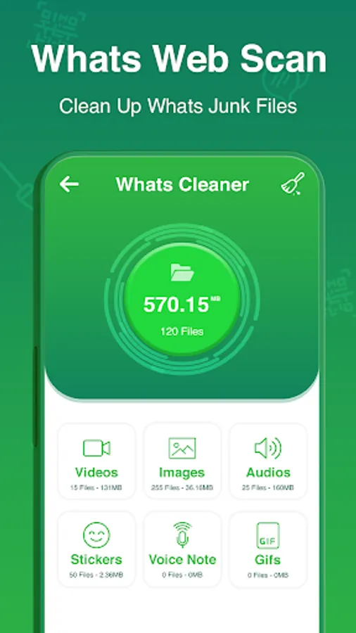Whats Cleaner: This feature can clean your unnecessary data of your whatsapp. Here this feature provides Clean All option to clean all your unwanted data also you can clean space by send and received items like images, videos, audios, stickers, voice notes, GIFs, Docs files etc.