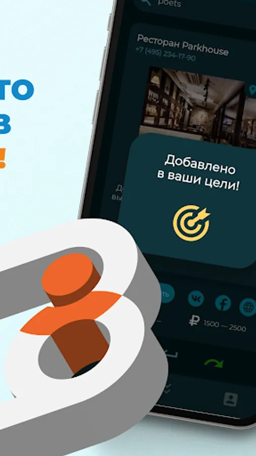“Ideas” for you are collected in the form of a stack of cards. Swipe left - you don't like the idea, swipe right - you like the idea, and when you click on the huge button with the target at the top, you can add a card to the goal and, if possible, put a big thick checkmark on this goal - “Done”.