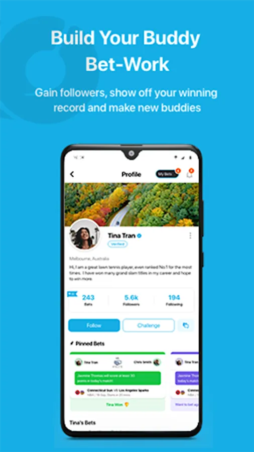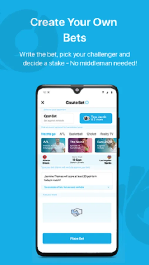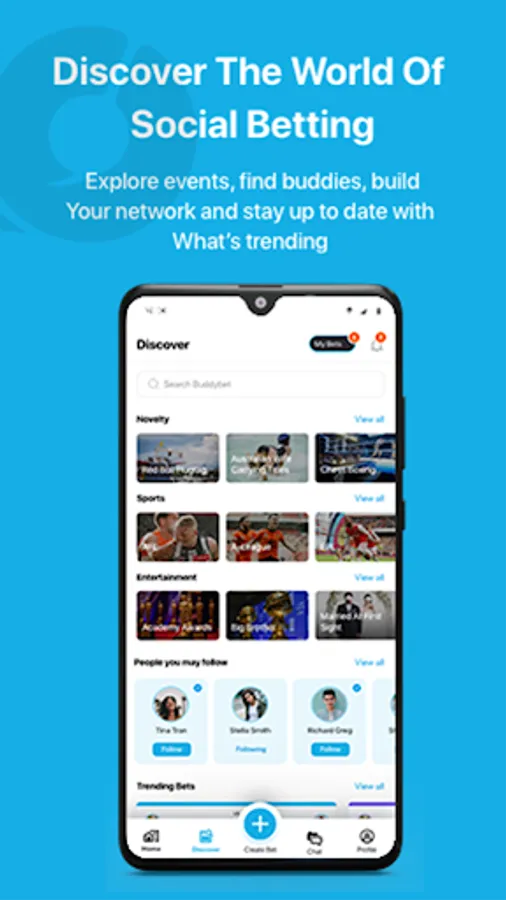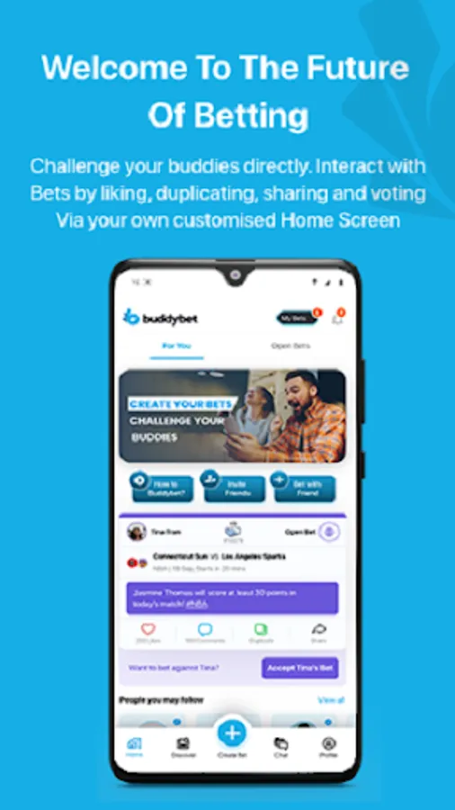 Buddybet is a social platform that allows you to place handshake bets against your friends, family and colleagues. From sports, TV shows, music and social topics, on Buddybet you can challenge your friends on just about anything! With no money exchanged, you play Buddybet for social validation, banter, bragging rights and to hold your buddies accountable. Buddybet is a free-to-play social application designed to be fun and entertaining.