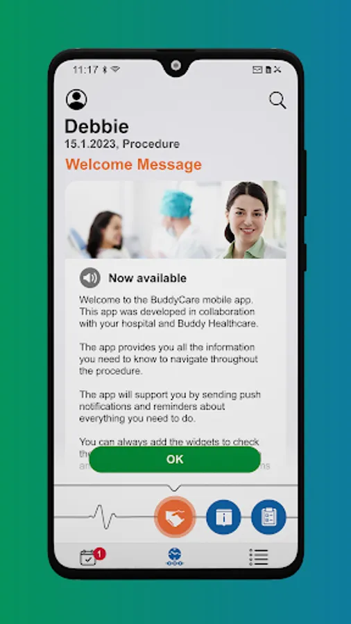 BuddyCare provides you with all the information about the procedure and treatment via an efficient, user-friendly and interactive timeline. You will receive reminders about important tasks before and after the procedure, opportunity to fill documents, navigation to hospital on the day of surgery and post-operative instructions, just to name a few.