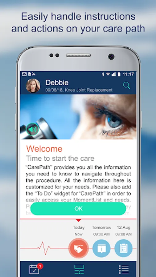 CarePath provides you with all the information about the surgery and treatment via an efficient, user-friendly and interactive timeline. You will receive reminders about important tasks before and after the surgery, opportunity to fill documents, navigation to hospital on the day of surgery and post-operative instructions, just to name a few.
