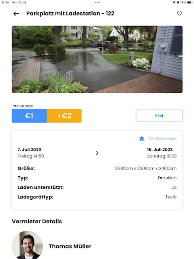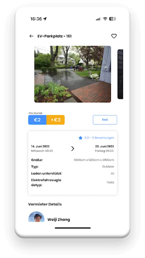 Sobald eine Buchung bestätigt wurde, könnt Ihr sicher und einfach über die App kommunizieren, um Einzelheiten zu klären oder Fragen zu stellen. Ob es um das Laden eines E-Autos unter Deinem Carport oder die sichere Zahlungsabwicklung geht, Du kannst sicher sein, dass alle Zahlungen und Transaktionen ordnungsgemäß abgewickelt werden.