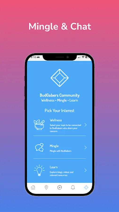 Chat with BudGabers, post private events to share with a select few or make them public to connect with a broader network