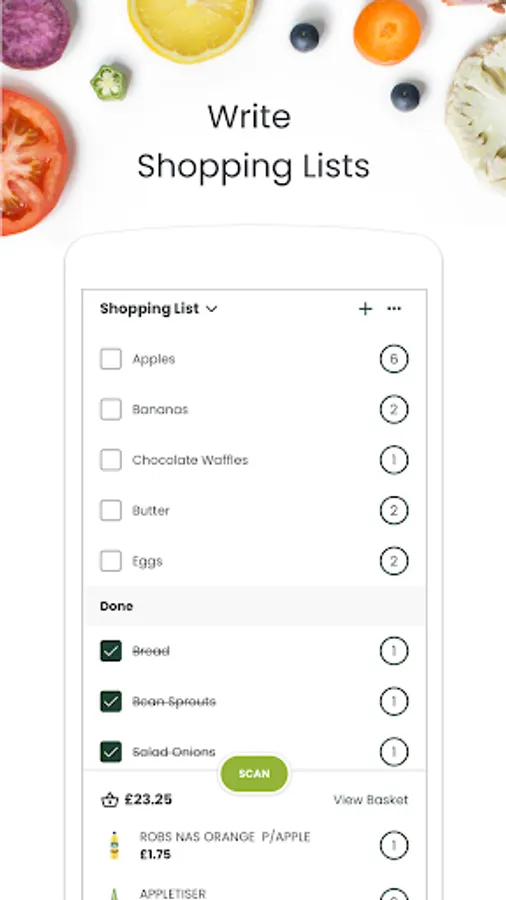 Scan products and pop them in your bag as you walk around the shop. If you have a shopping list, it will tell you where everything is.