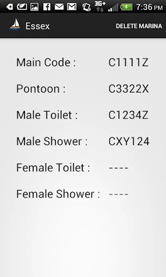 MyMarina allows you to save the gate codes for multiple marina's with no sensible limit on the characters in the gate code.