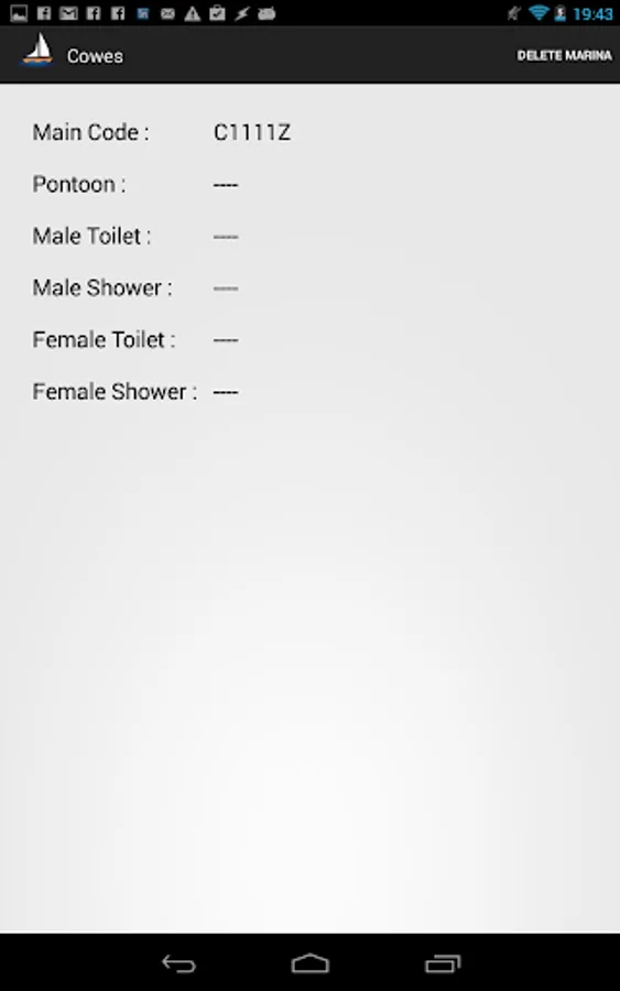 Save the following codes for each marina.