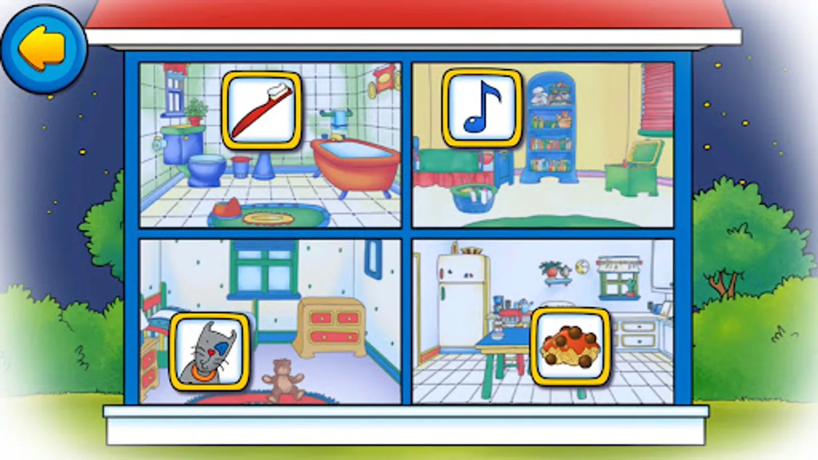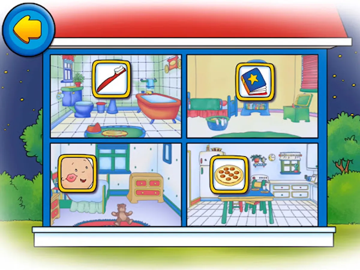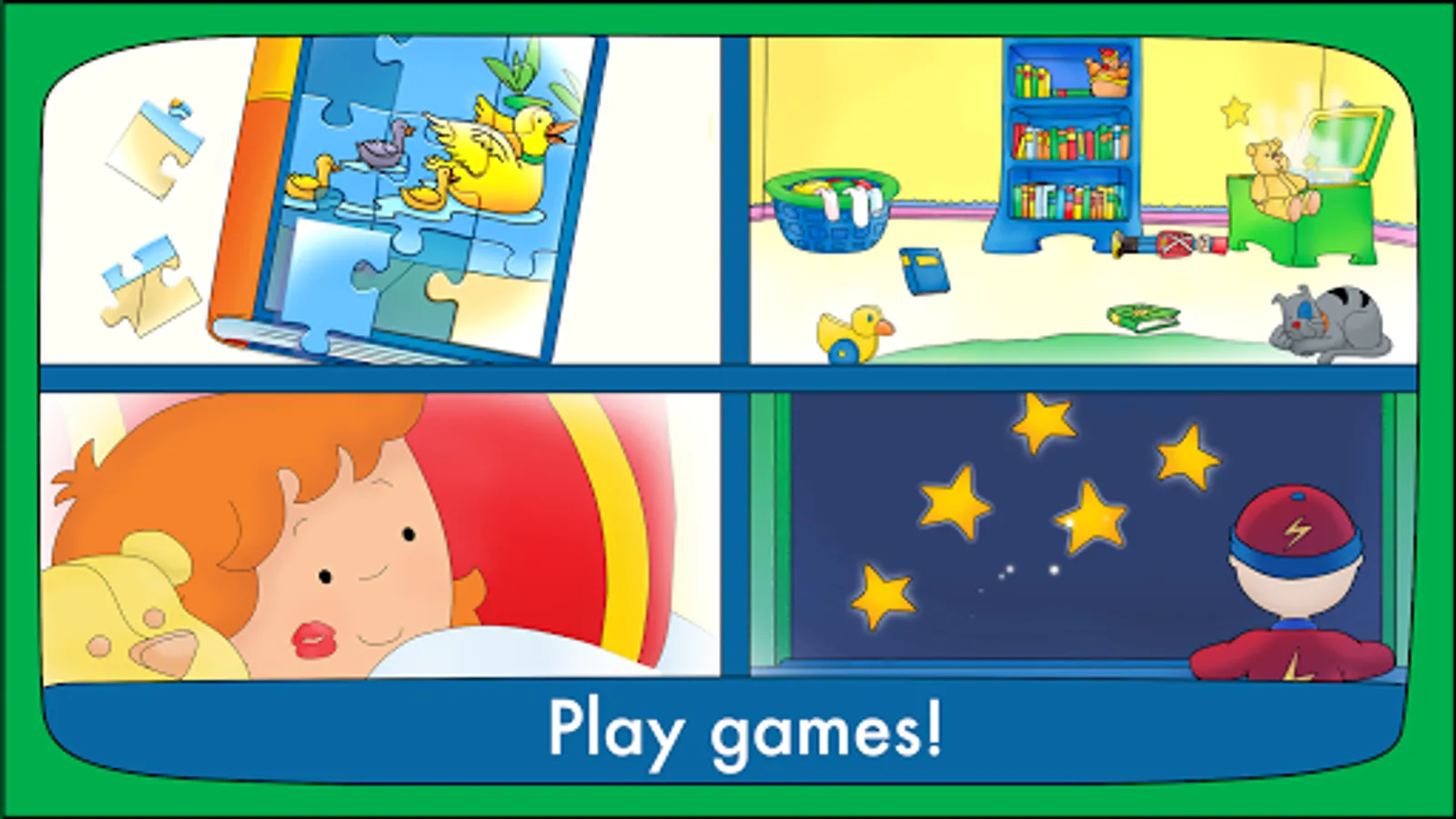 • Fun role-play for kids! Act like the parent by choosing the order of Caillou’s bedtime routine