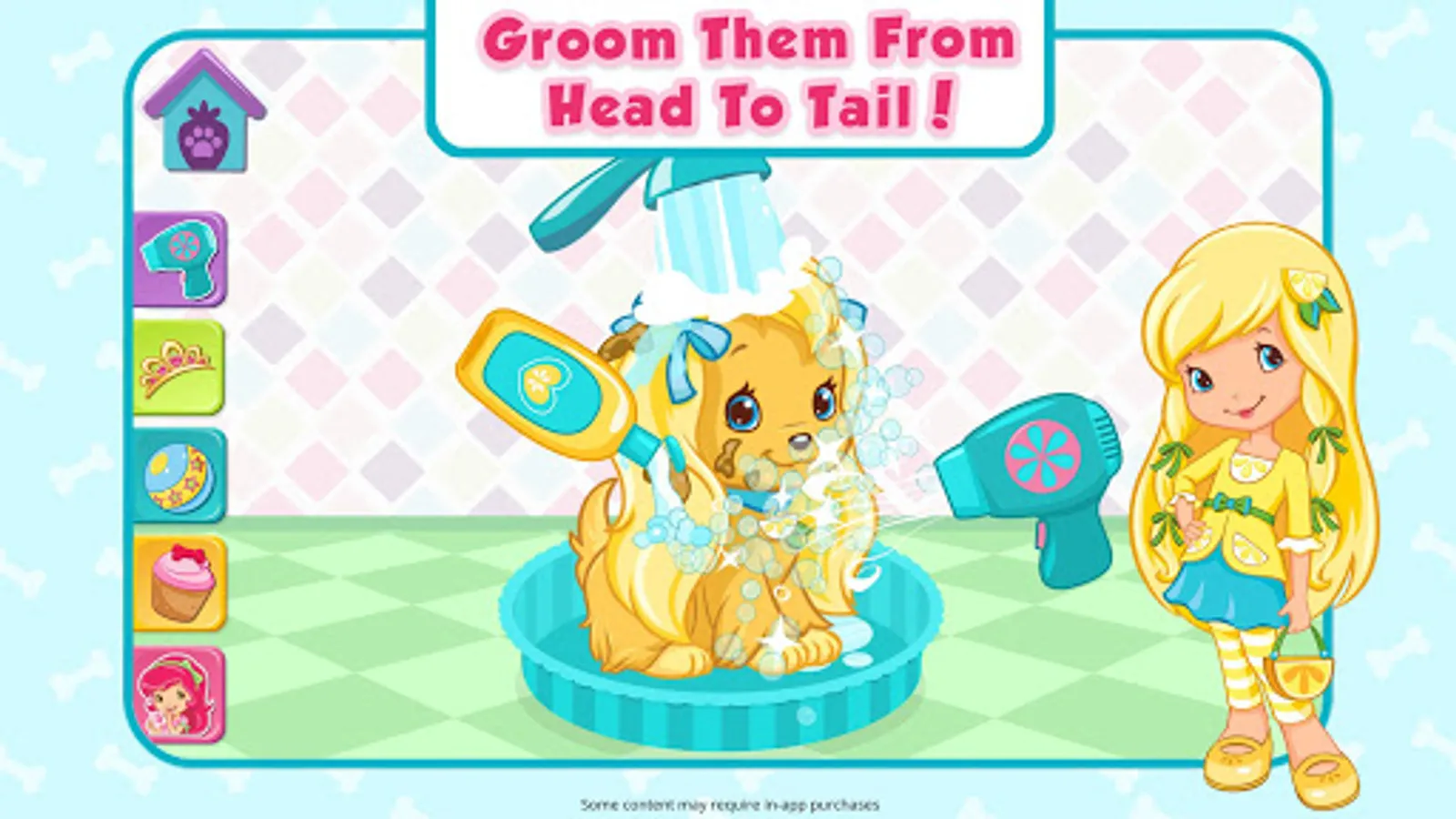 Budge Studios™ present STRAWBERRY SHORTCAKE PUPPY PALACE! Have you ever wanted to take care of a puppy? Now you can, by helping Strawberry Shortcake pamper her friends’ precious pups!