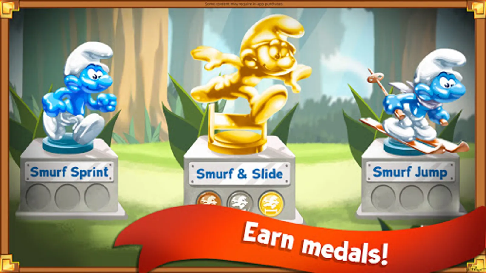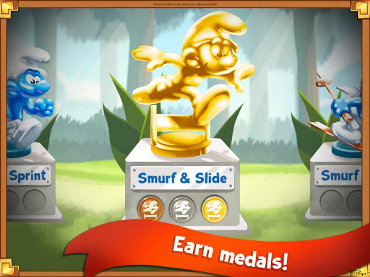 Win medals in six sports: the Smurf Sprint, Smurf & Slide, Smurf & Arrows, Basketsmurf, Ski Smurf, and Smurfpoline!