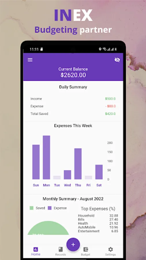 Record On the Go Record your finances on the go. By default, BudgetINEX hides your financial details, so you don't have to feel uncomfortable that someone might get a peep at your details while recording your transactions on the go.
