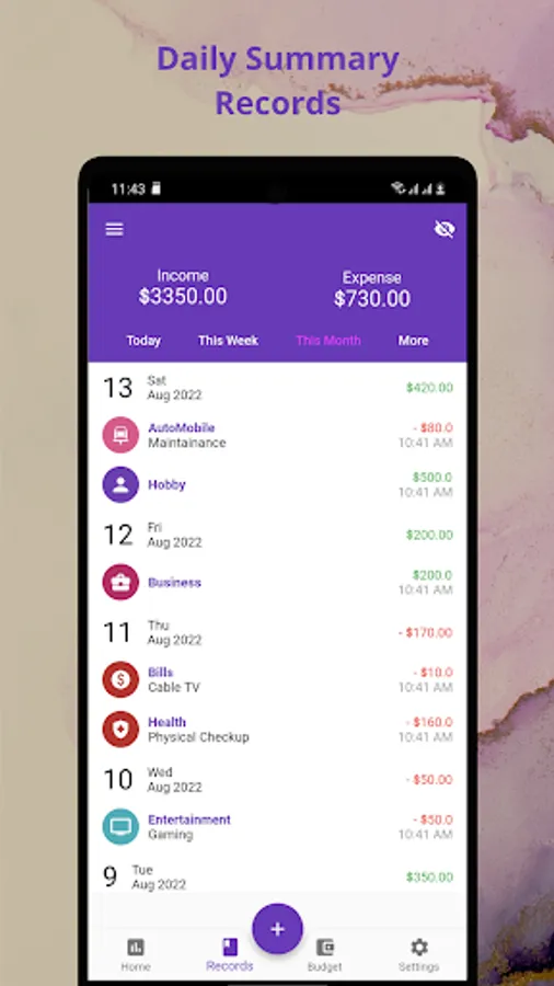 Budget management Stay on top of your budget goals. Keep a budget target and track your budgeting progress.