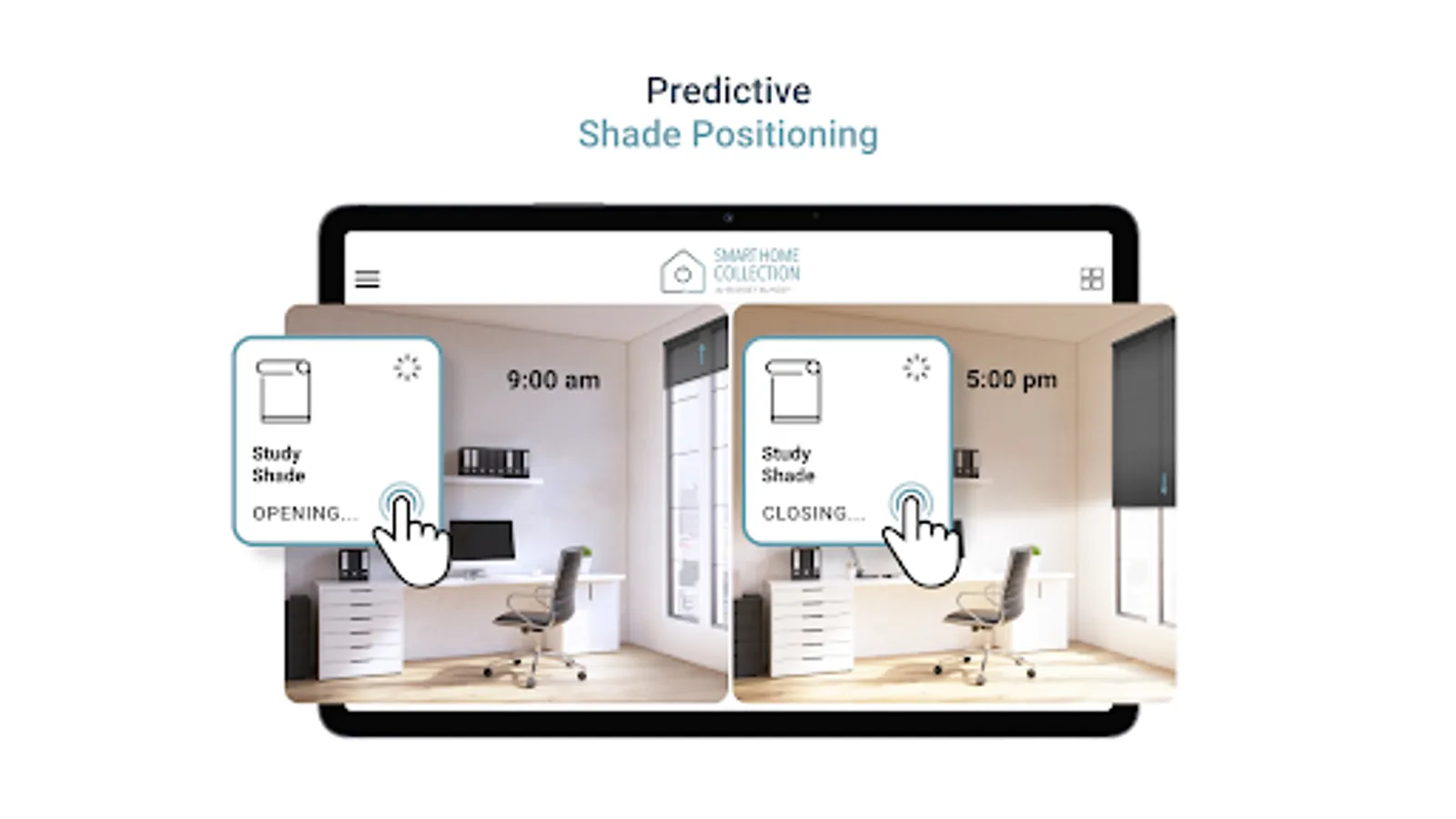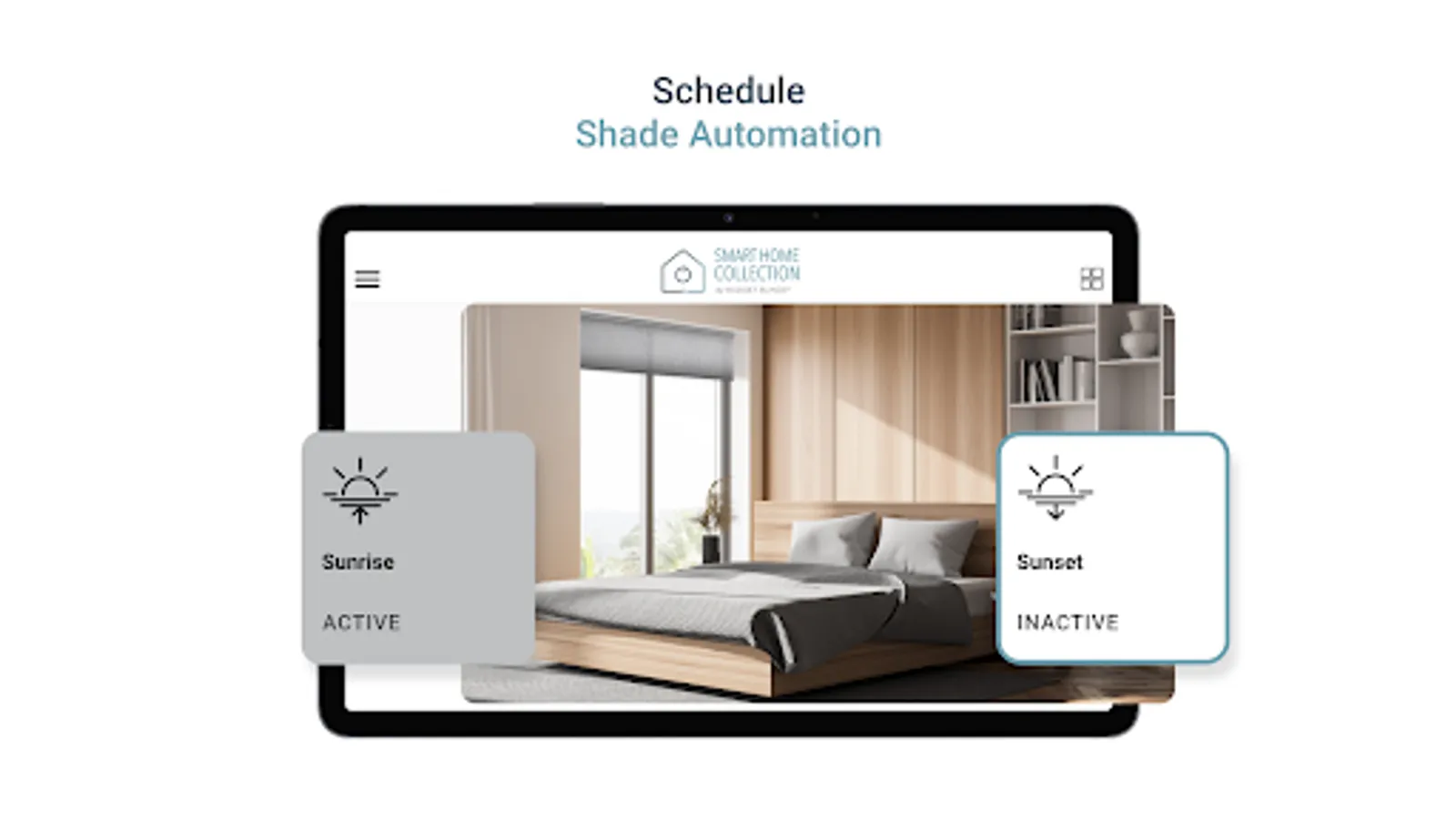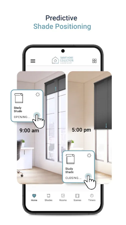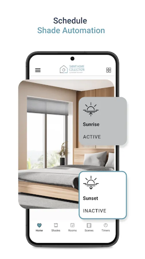 Smart Home Collection App lets you create an automation routine, and once setup, autonomously raises and lowers your smart shades at the optimal time, so your home’s climate is always at its best.