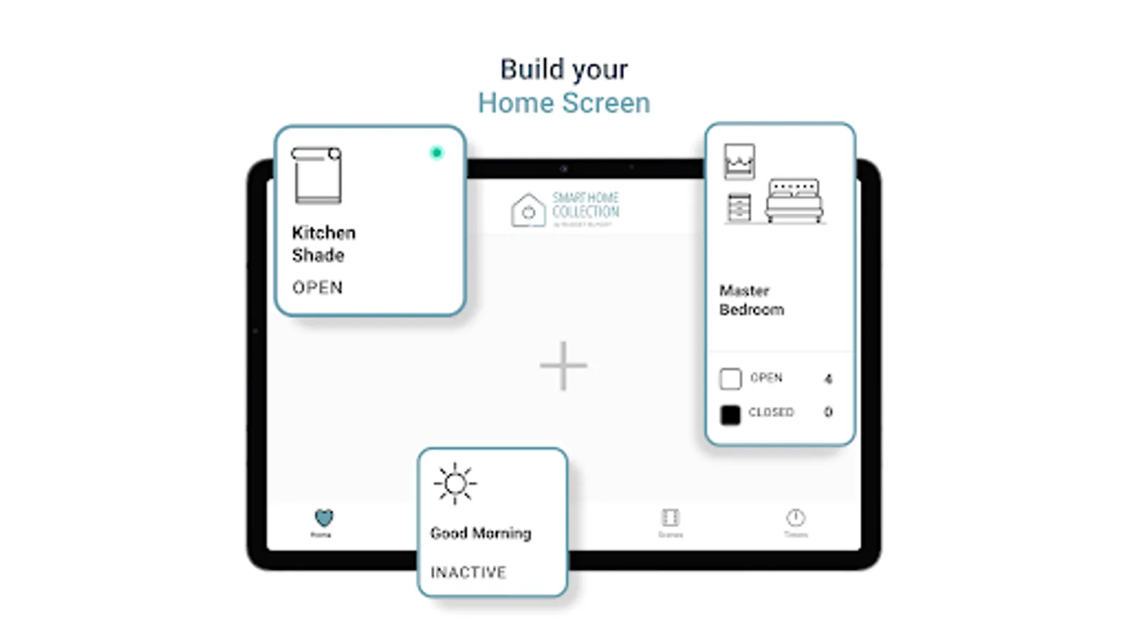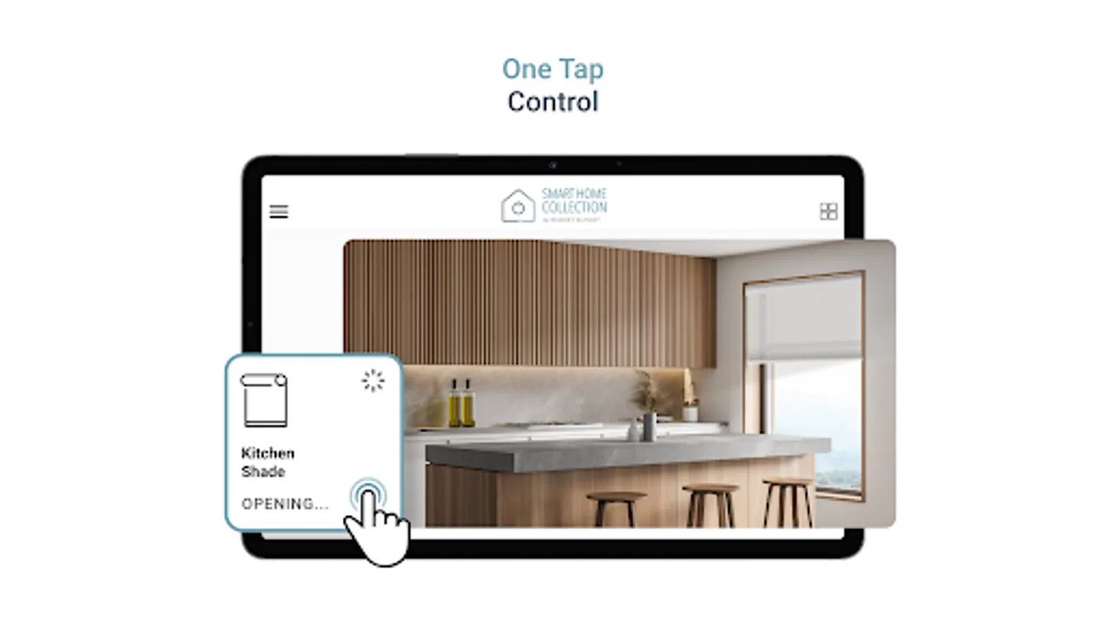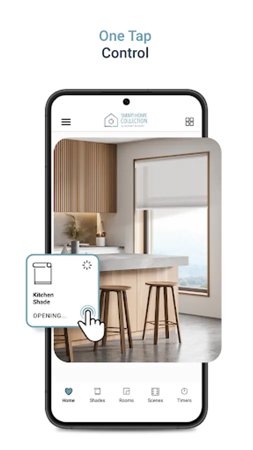 The new Smart Home Collection App not only allows you to activate, adjust and automatically position your shades but does so through One Tap on the Shade Tiles. One Tap to close, One Tap to open and One Tap to activate and stop scenes. A double tap stops a shade’s operation, and a single long press opens a dedicated shade control screen giving you access to more customized settings.