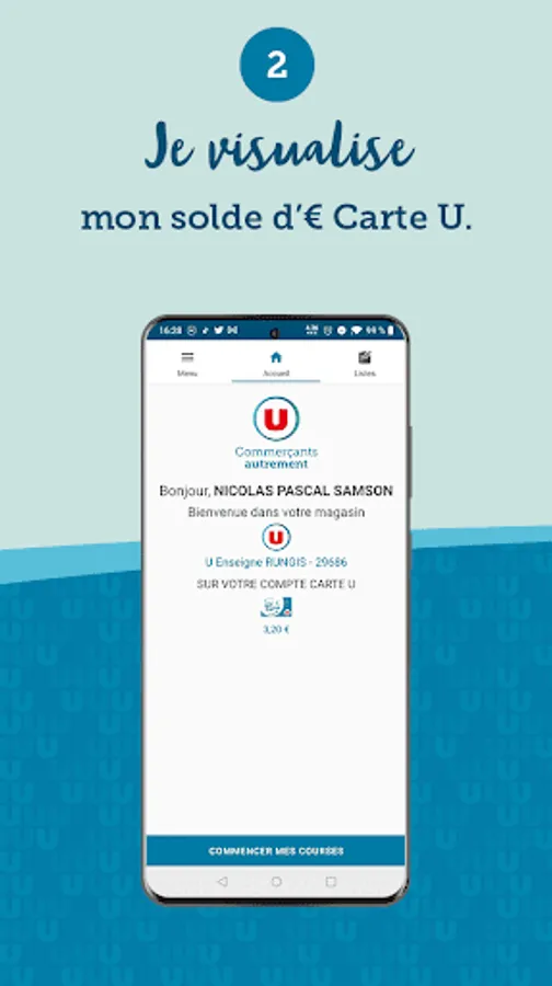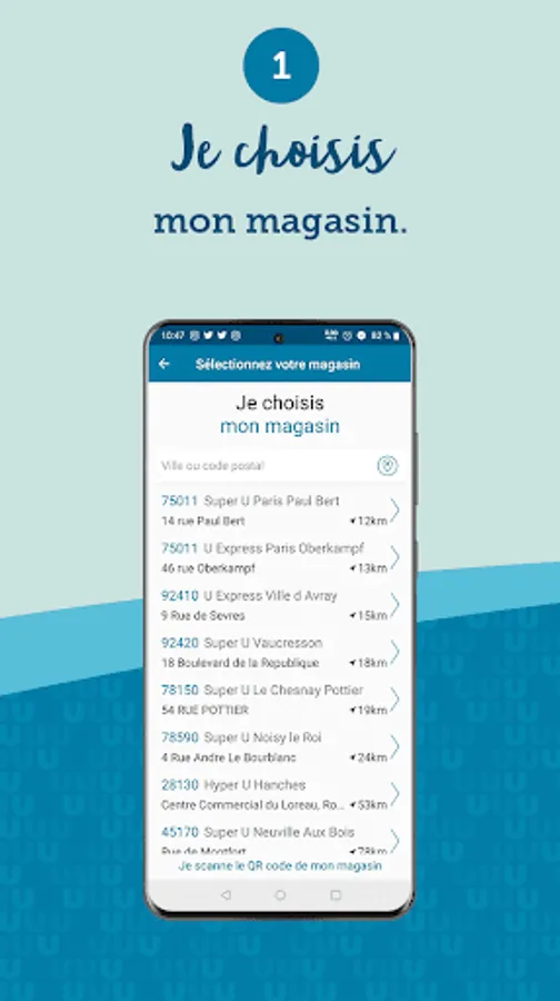 I connect to the Wifi network of my store. I launch the application and select my U store. I enter the number of my loyalty card and validate the general conditions of use as well as the legal information (only during the first use).