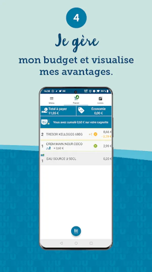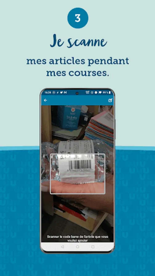 I add the products to my basket as I shop by scanning the barcode of the product. The immediate updating of my promotions and the amount of my basket, allow me to control my budget.