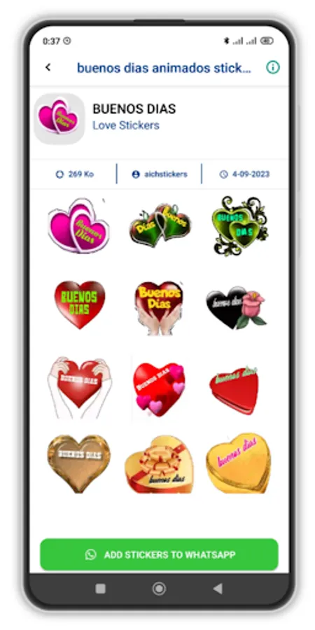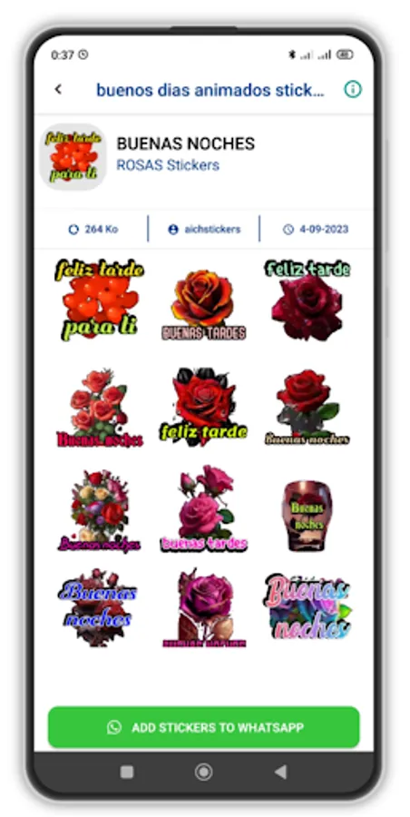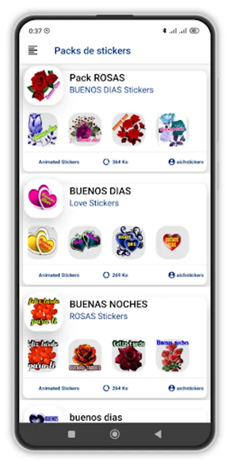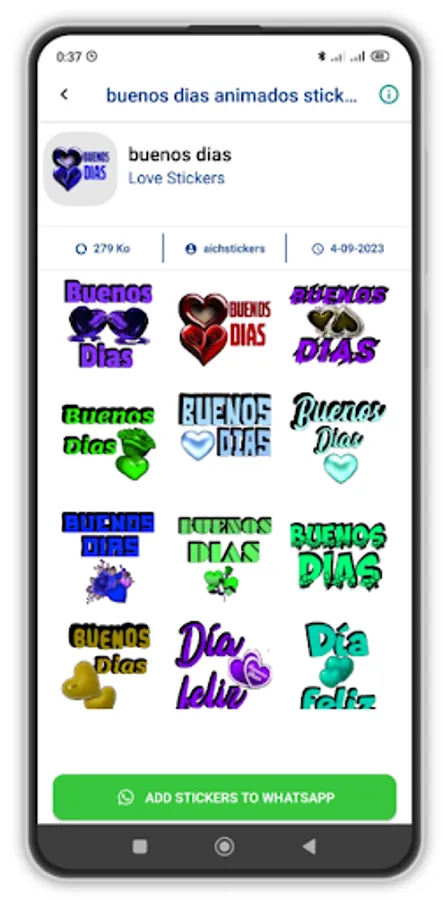 The application contains several packages with animated good morning stickers. Each pack contains over 16 different stickers.