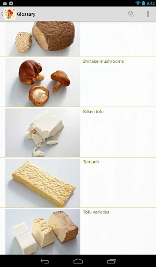 - A glossary explains the vegetarian proteins and ingredients.