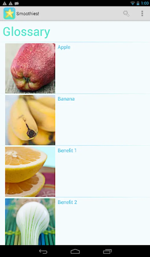 - A glossary explains fruits, tools and benefits.