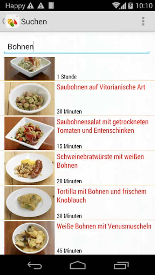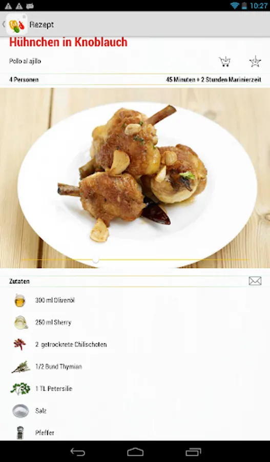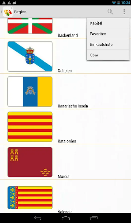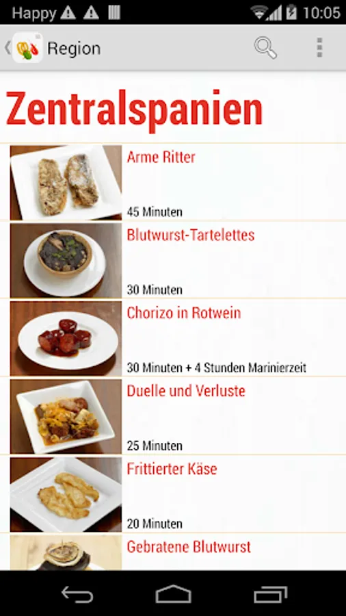 The tapas! App is divided into chapters (salads, fish & seafood, vegetables, meat, desserts ...) and regions (Catalonia, Andalusia, Galicia ...). Use the search function to find your Tapa also for ingredients (such as asparagus, artichokes, clams ...).