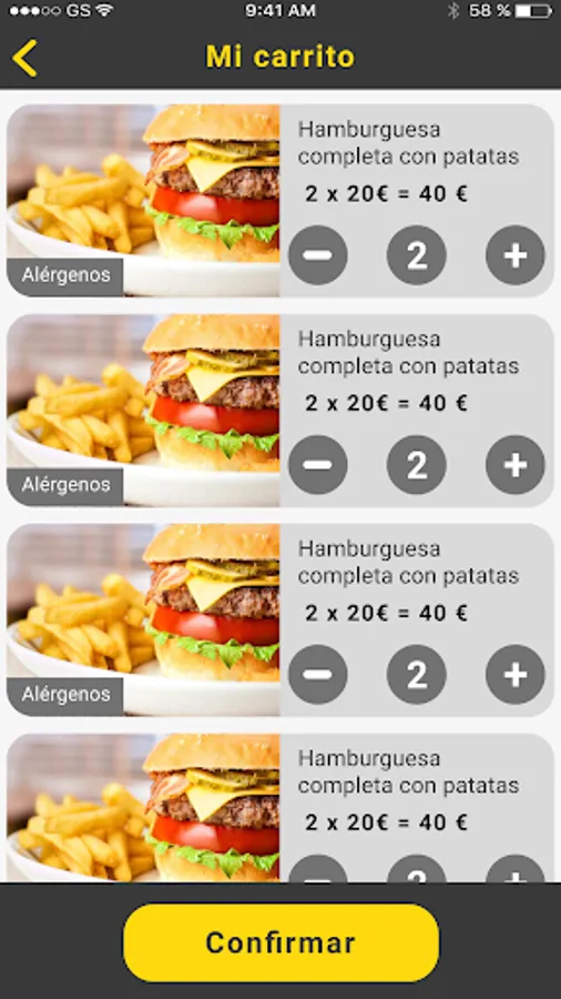 Images, descriptions, prices and allergens of all products.