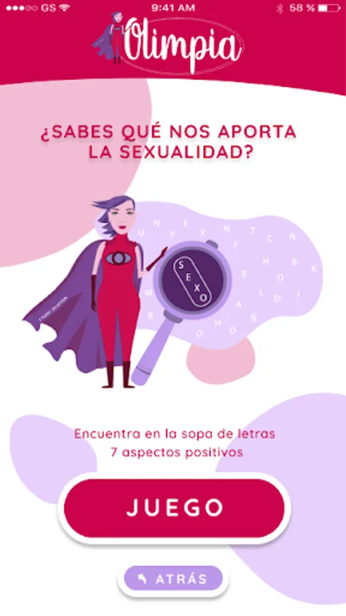 This App consists of different interactive games on sexuality, affective-sexual diversity, sexual orientation, the body, the menstrual cycle, love, sexual health, pleasure, STI prevention, different contraceptive methods, violence sexual and... as if that were not enough, places of reference to consult, deepen and continue learning about these and other issues related to our sexuality... There is nothing that escapes Olympia!!"