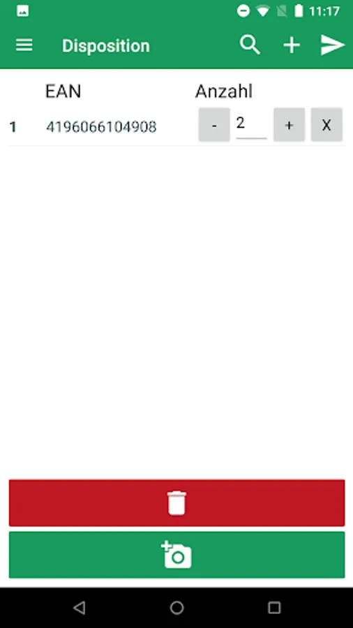 * In the order list you can work without a template; for this, the red line must pass through the barcode