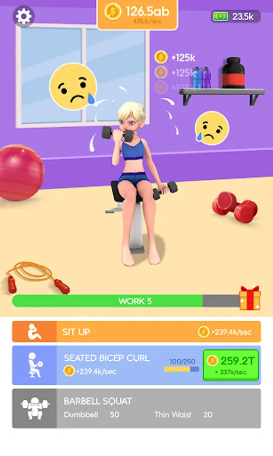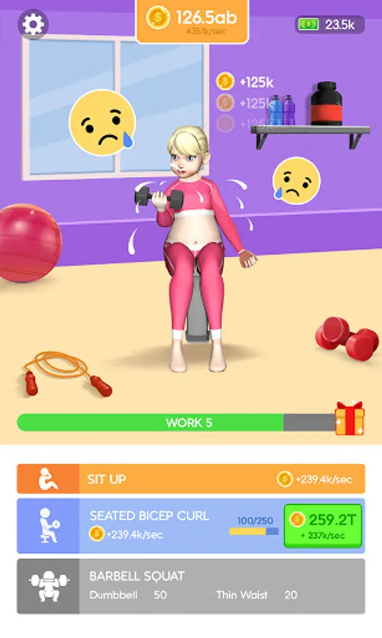 You begin as an obese, hopeless girl. You'll work hard to get lean and become the best version of yourself! Tap to workout then complete the challenges to achieve a perfect body! This fitness simulator game allows you to experience the allure of staying in shape