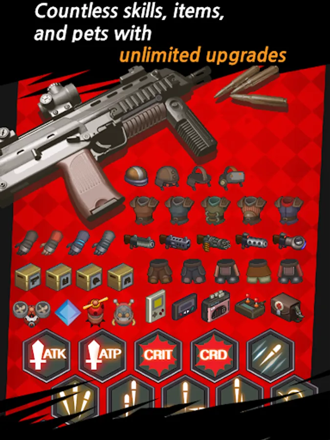 - Level up and collect powerful equipment to unlock and strengthen your potential