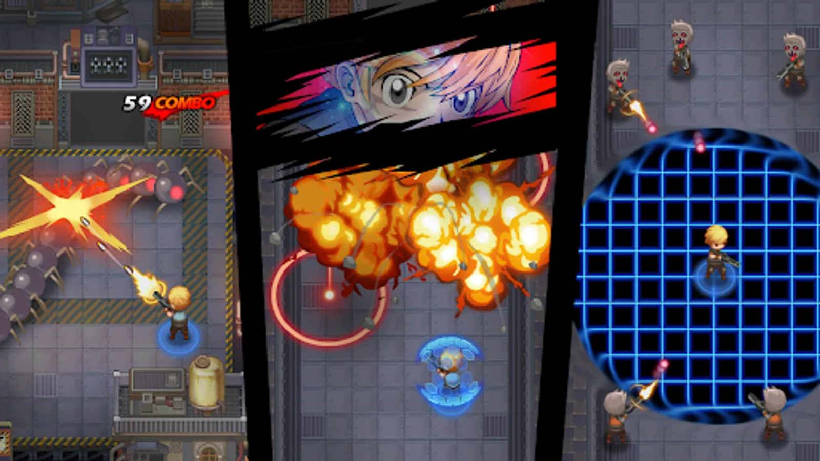 Roguelike stages provide a new experience every time you play. Defeat all enemies to clear the area. There are various areas of the stage. Find a variety of interesting areas, including wave areas where hordes of enemies charging in waves, supply areas where you can restore new skills or health, and shop areas where you can purchase items.