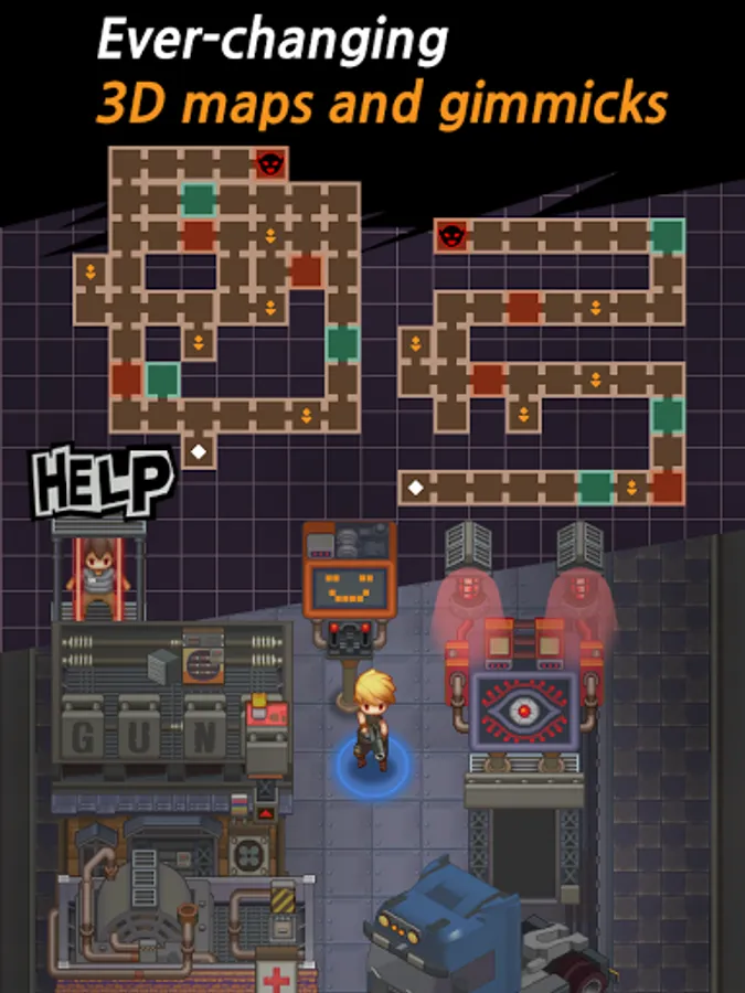 - Enjoy a roguelike shooting game with a unique view point and various stages
