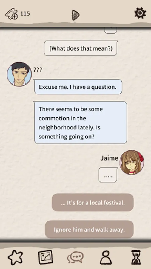 The game progresses through dialogue and your decisions determine Jaime’s destined match.