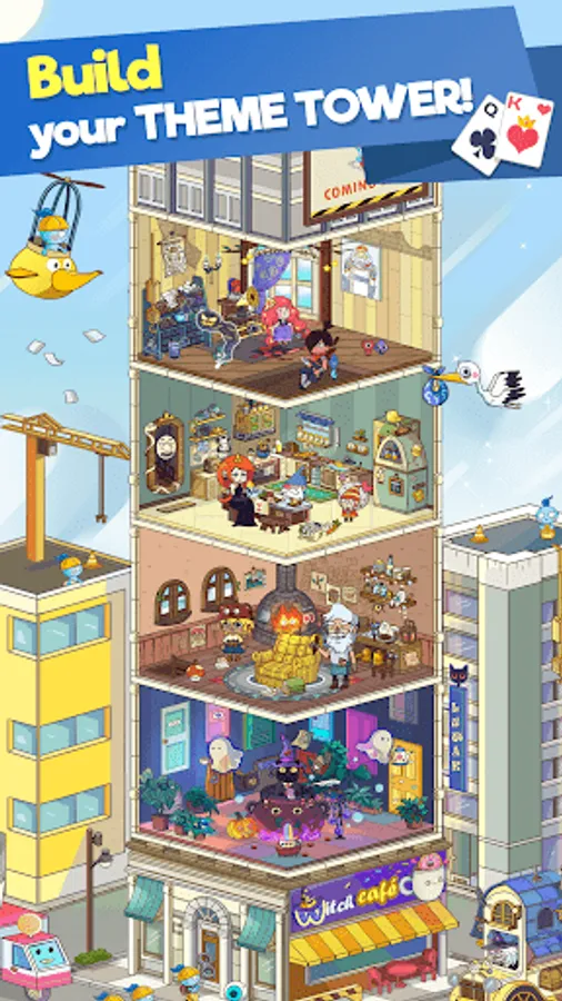 Theme Solitaire lets you decorate and build your own solitaire city towers. You will have the option to choose your own interior, props, and characters in this solitaire tripeaks card game to build your own unique magic tri tower & tripeaks buildings filled with beautiful rooms!