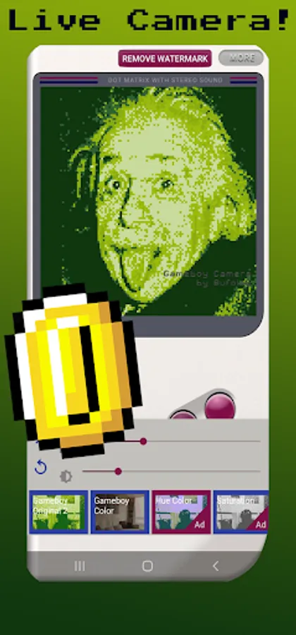 Retro Gameboy camera filter for your mobile Access stunning photo and video effects from the 90s! Unleash your creativity with this great retro Gameboy filter effect app and share it with your network.