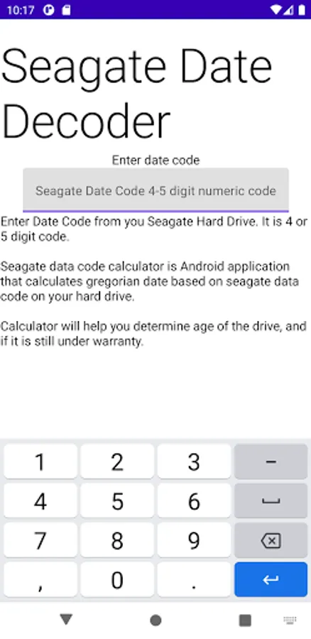 Seagate data code calculator is Android application that calculates Gregorian date based on seagate data code on your hard drive.