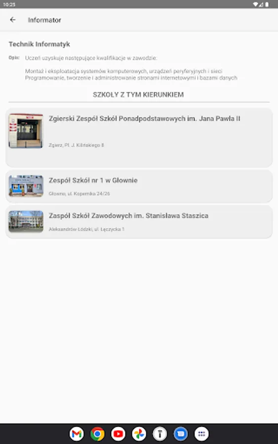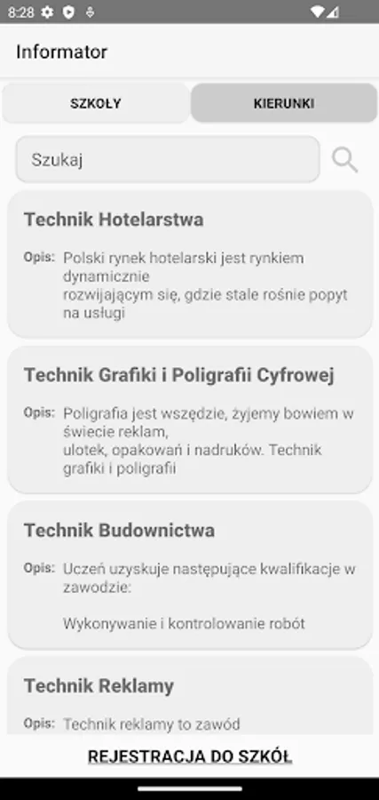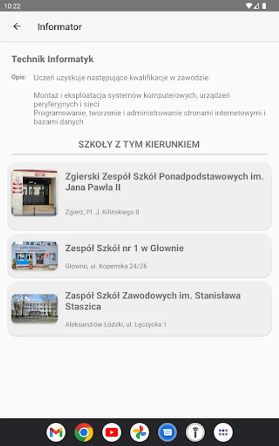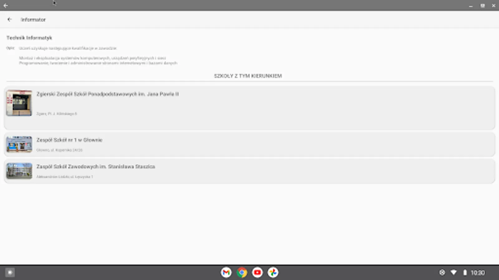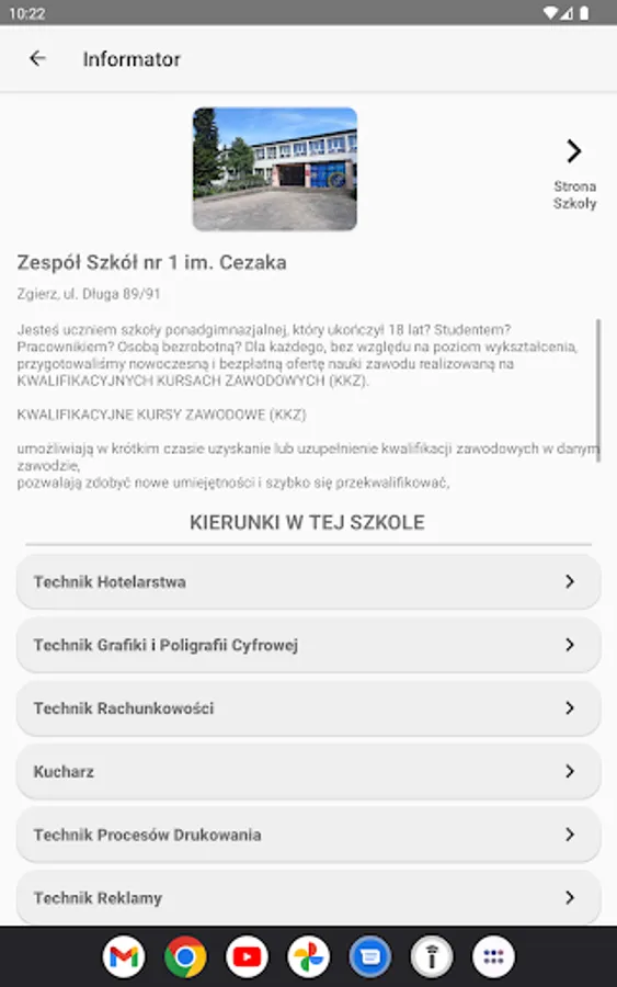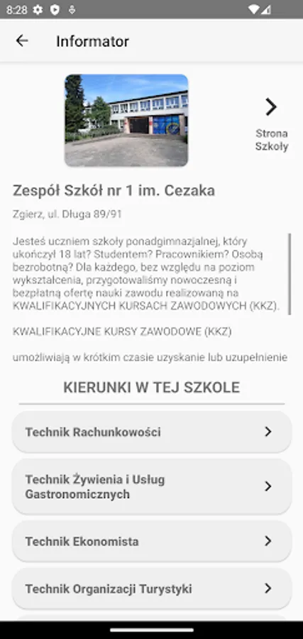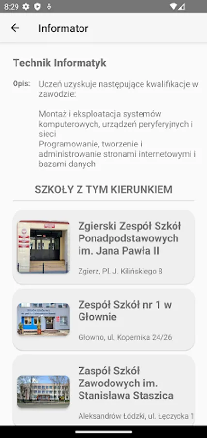 The application is used to familiarize yourself with the offer of secondary schools in the Zgierz district. Users can search and view detailed information about schools and schools.