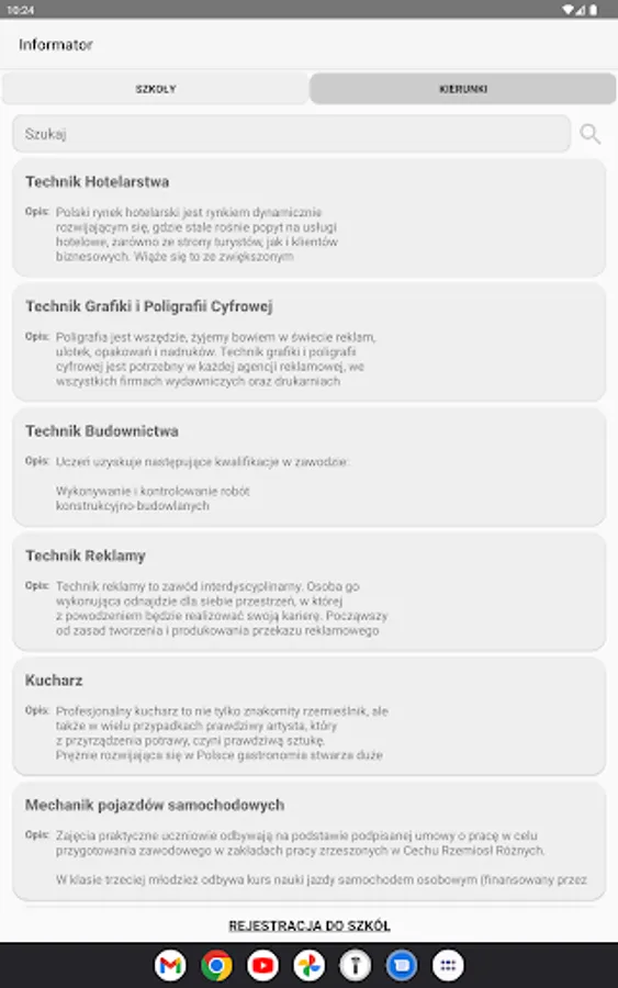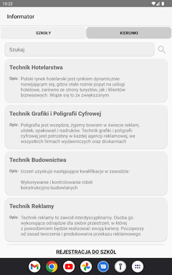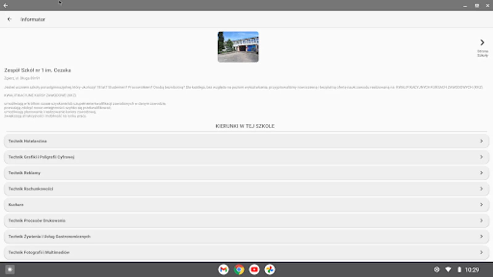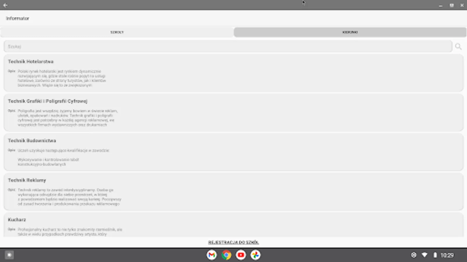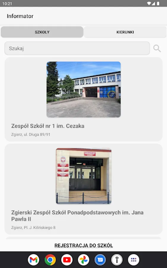 The application is used to familiarize yourself with the offer of secondary schools in the Zgierz district. Users can search and view detailed information about schools and schools.