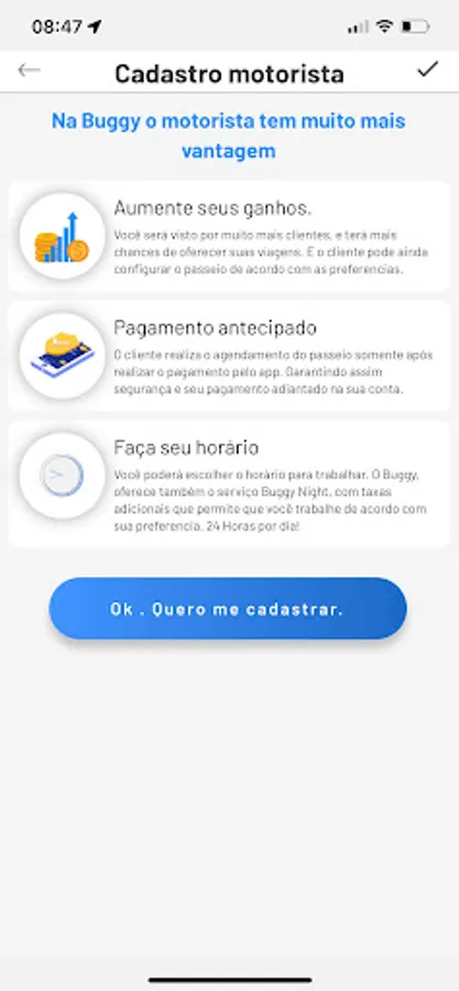 With Buggy, the price estimate appears right at the beginning. So, in addition to being able to choose the tour according to your wishes, you also have the amount you will pay before starting the tour.