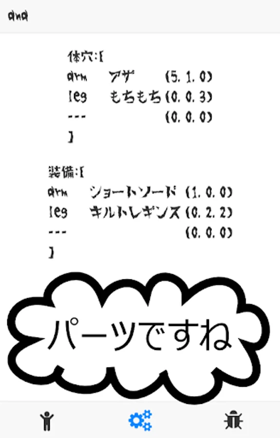 ・パーツやアイテムの数字は(こうげき、ぼうぎょ、すばやさ)を意味しています。