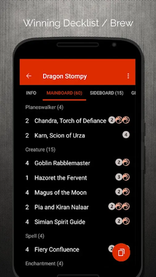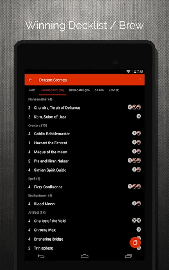 - Deck builder with winning decklist from Standard, Modern and Legacy formats.