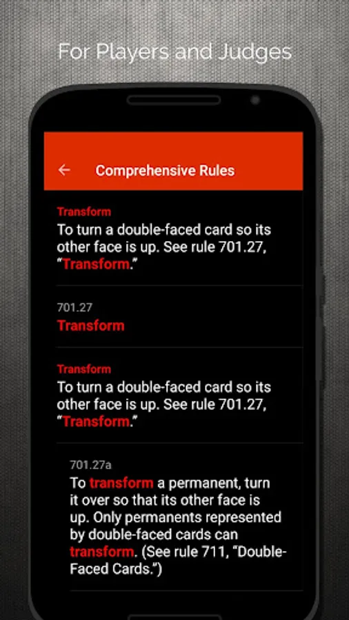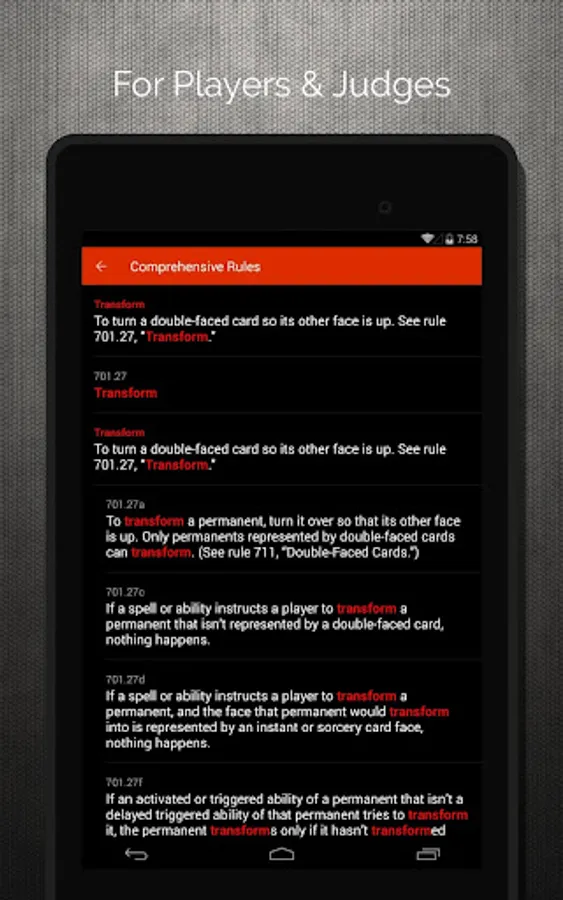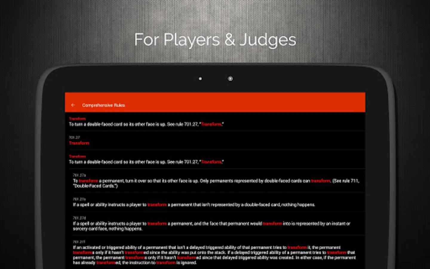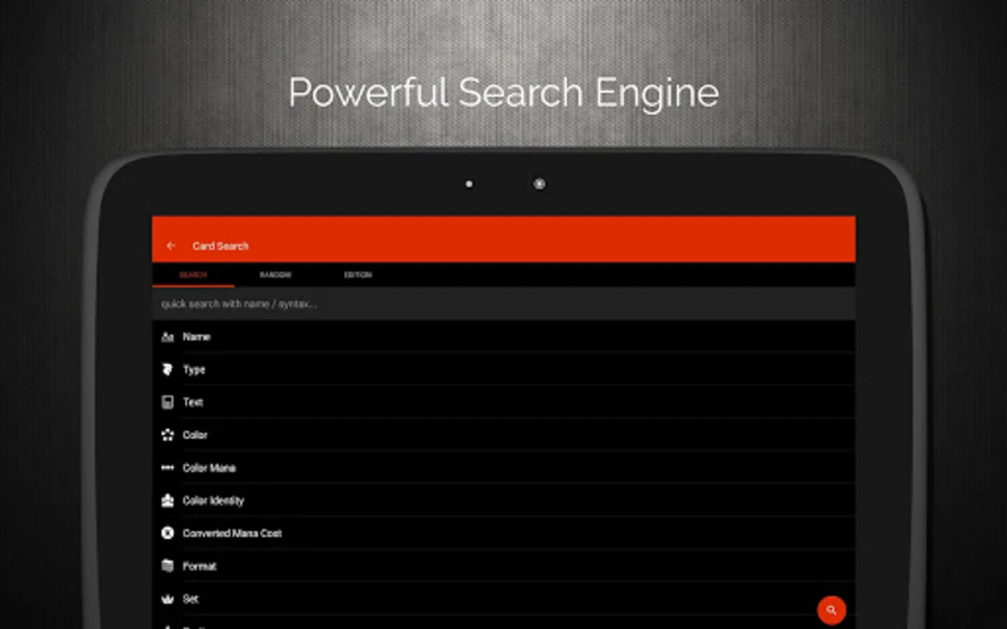 - Offline complete database including all latest cards printed, promo cards, 11+ printed languages, 20+ formats banlist, card rulings, reserved list and etc.
