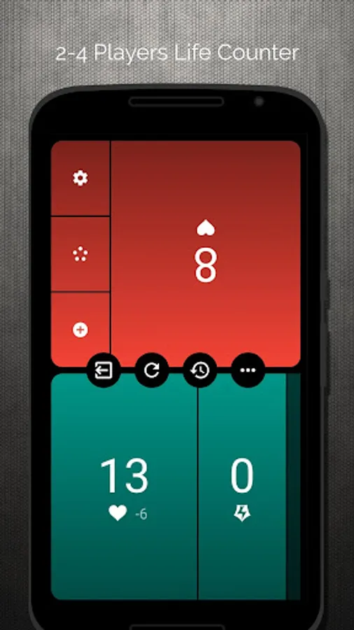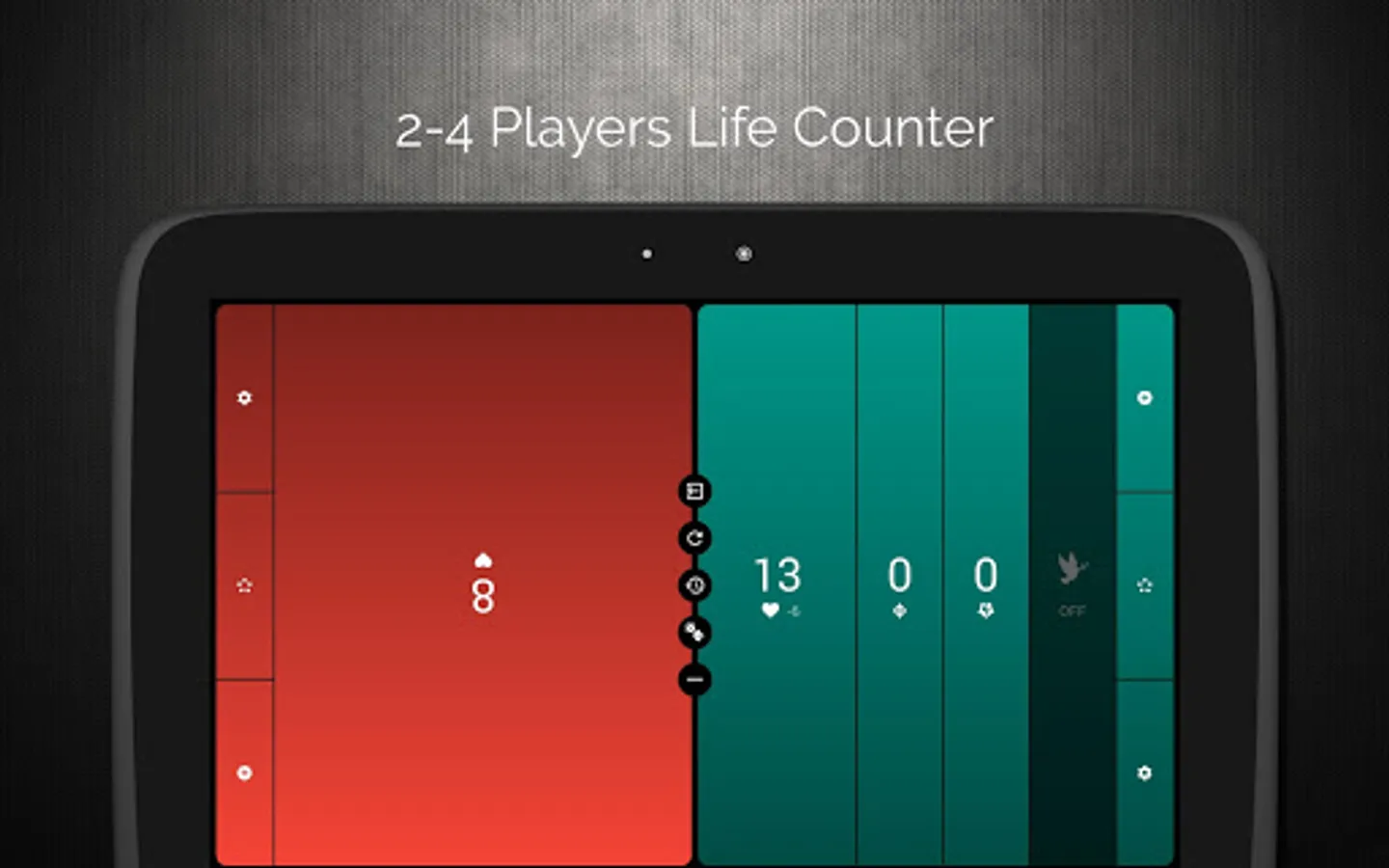 - Life counter support 2-8 players, 15 different counters, counter changes history, mana pool and modern design.