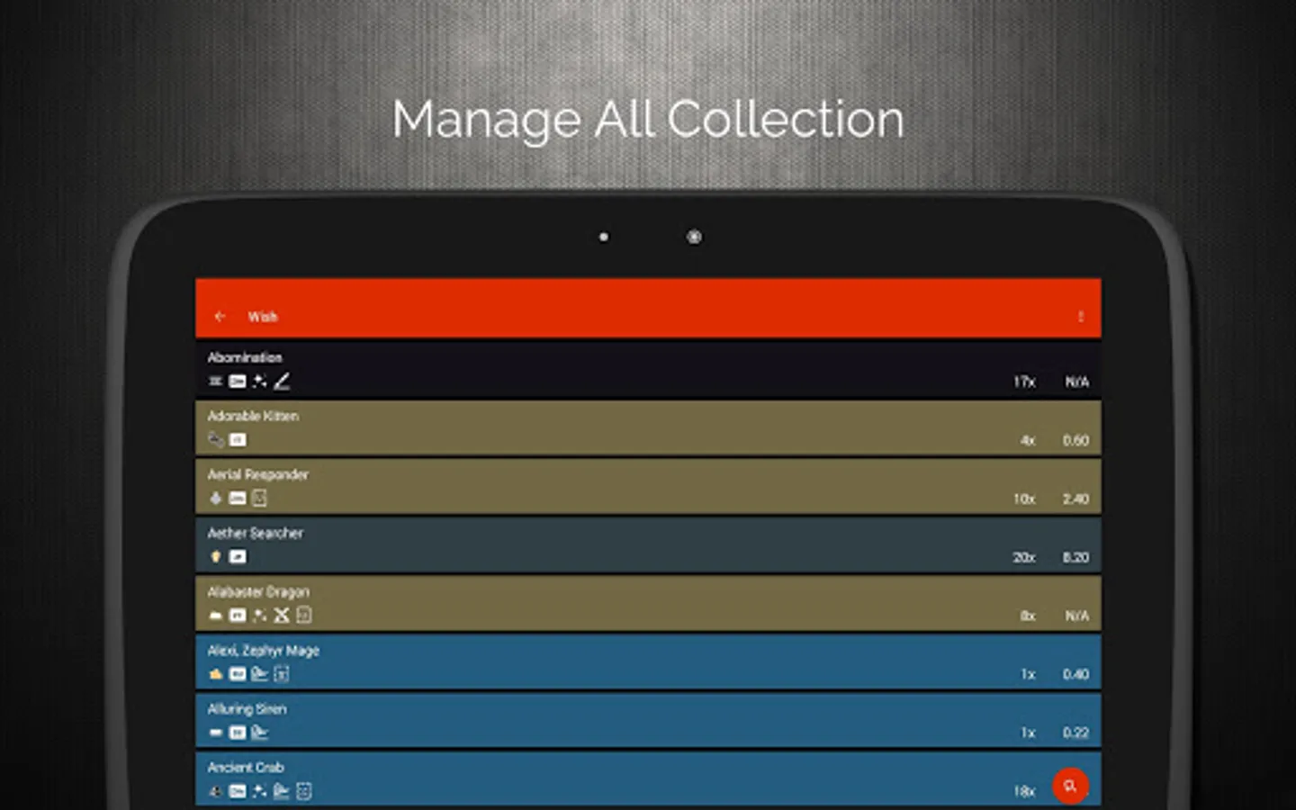 - Track your collection, trading and wish list with up-to-date price wherever you go.