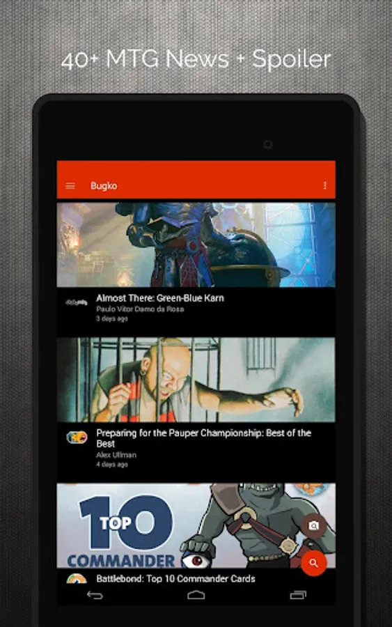 Bugko is an unofficial app (fan made) all-in-one companion app designed for Magic: The Gathering (MTG) players and judges. Bugko focused on offering unique core features such as news aggregation, spoiler alert, tournament deck list update, card syntax search and many more. Other familiar features like life counter, wish list, collection tracker, offline card search, random card, comprehensive rule, deck building are also built inside Bugko for a complete experience. Bugko will be the first modern designed MTG app you will truly enjoy.