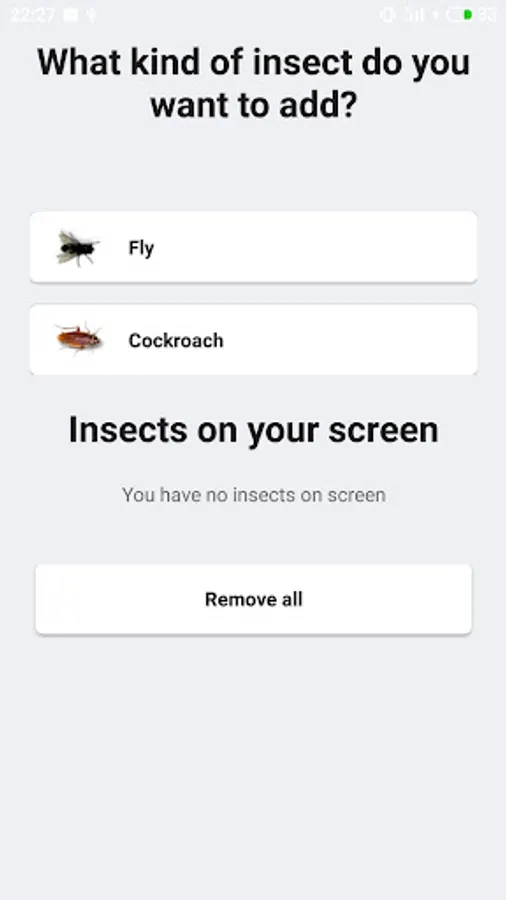 Application also has flies manager also cockroaches manager which shows animals count you have added to your screen.