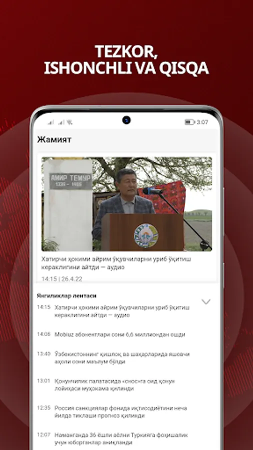 — siyosat, business, sport, fan, madaniyat va jamiyatdagi eng important hamda dolzarb yangillar;