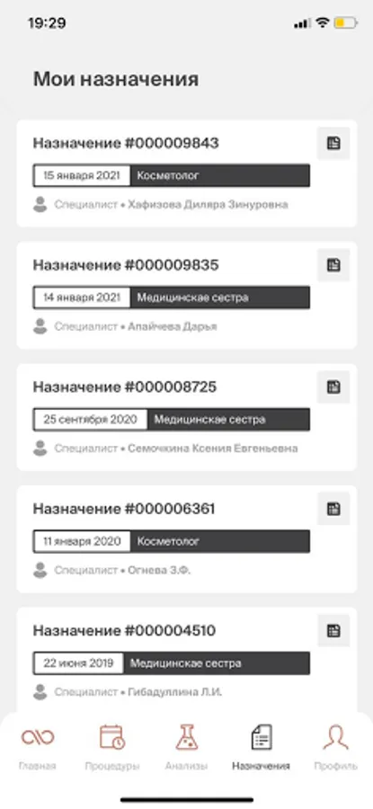 You can view test results, doctor's appointments, post-procedural care, the result of bioimpedance body composition analysis, statistics of the procedures performed and cosmeceuticals.
