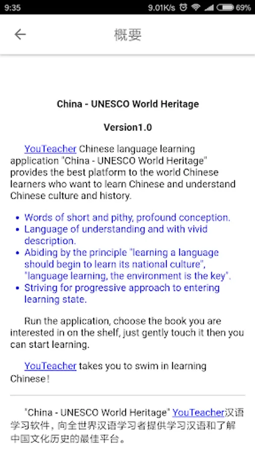 YouTeacher Chinese language learning application "China - UNESCO World Heritage" provides the best platform to the world Chinese learners who want to learn Chinese and understand Chinese culture and history.